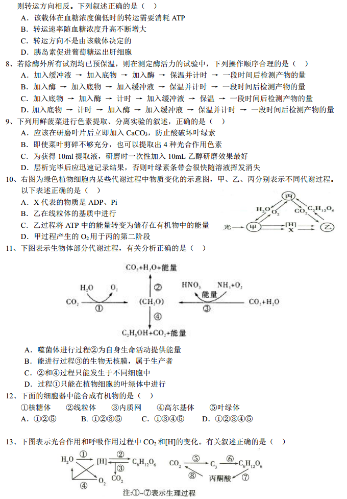 湖北沙市中学2017届高三上学期第二次考试理综生物试题及答案(2)