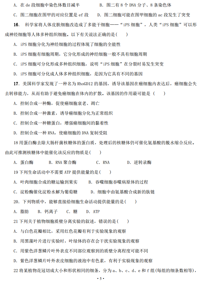 湖南娄底双峰县第一中学2017届高三第一次月考理综生物试题及答案(5)