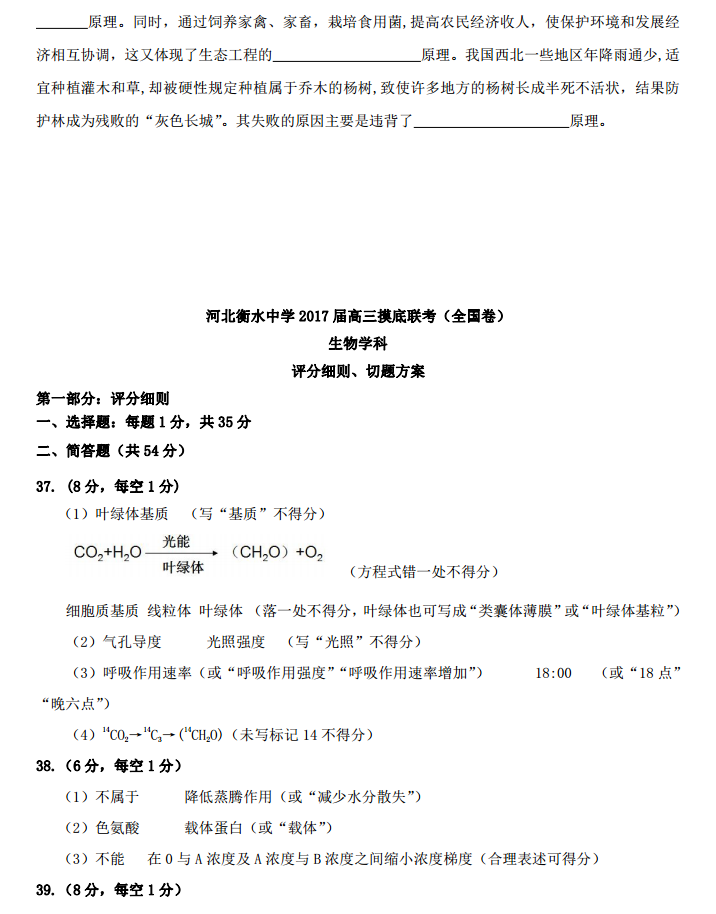 河北衡水中学2017届高三摸底联考理综生物试题及答案(15)