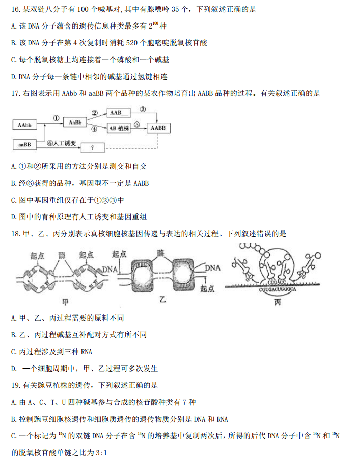 河北衡水中学2017届高三摸底联考理综生物试题及答案(5)
