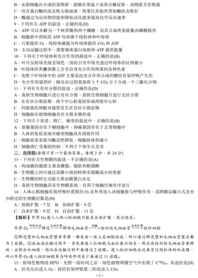 湖南师大附中2017届高三上学期第一次月考理综生物试题及答案(2)