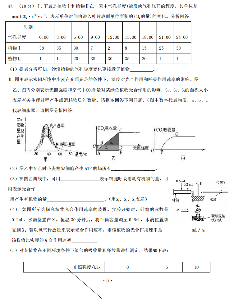 河北衡水中学2017届高三上学期小二调考试理综生物试题答案(11)