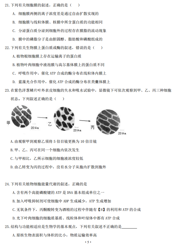 河北衡水中学2017届高三上学期小二调考试理综生物试题答案(5)