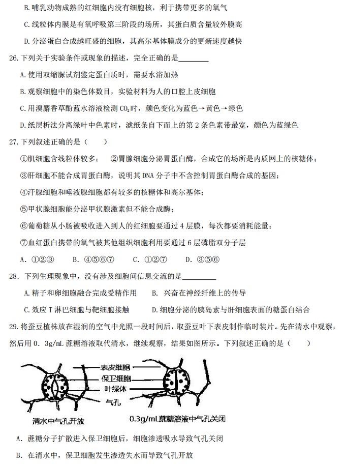 河北衡水中学2017届高三上学期小二调考试理综生物试题答案(6)
