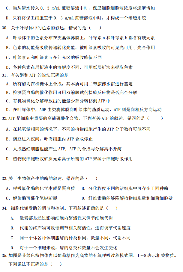 河北衡水中学2017届高三上学期小二调考试理综生物试题答案(7)