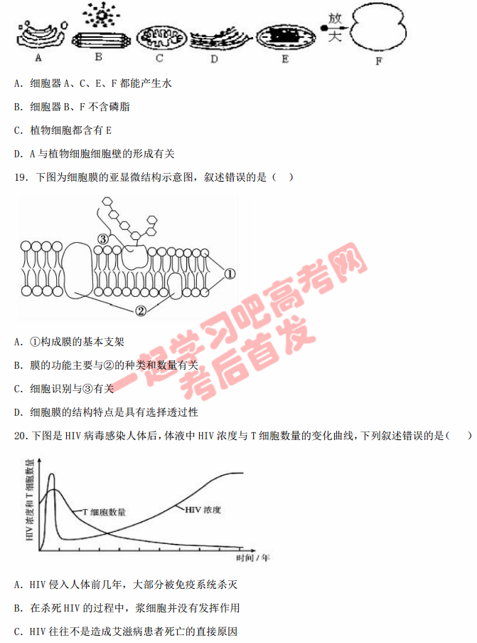 河北故城县高级中学2017届高三上期第一次月考生物试题答案(5)