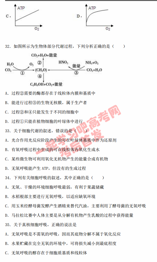 河北故城县高级中学2017届高三上期第一次月考生物试题答案(9)