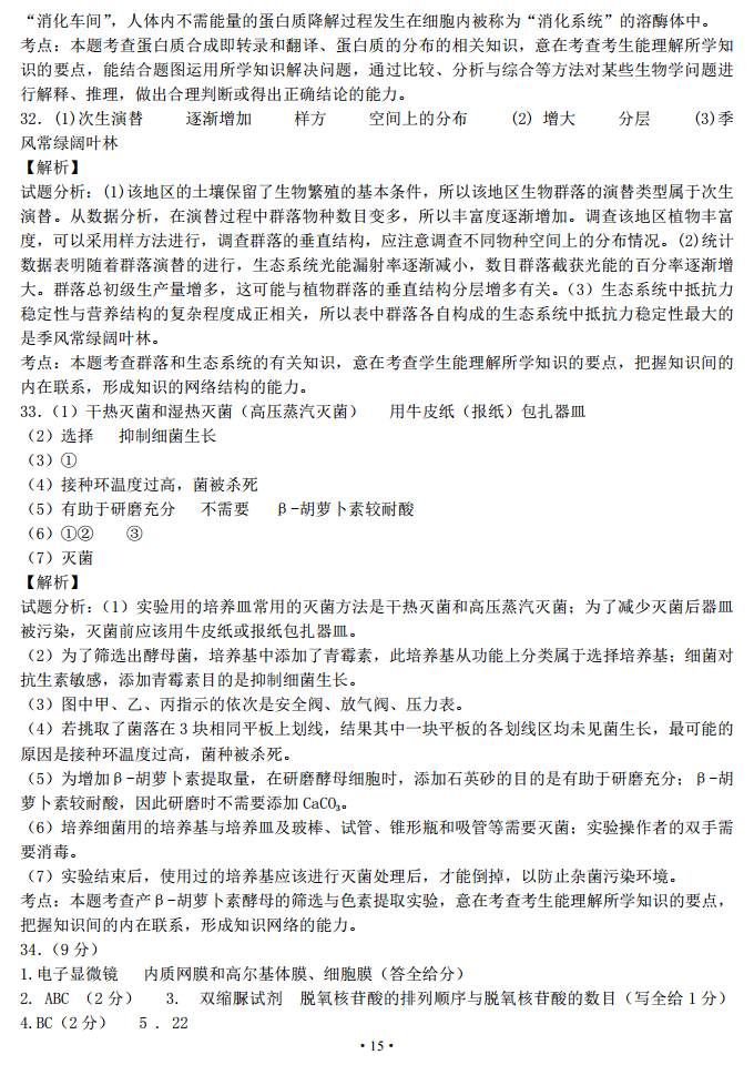 湖北枣阳鹿头中学2017届高三上学期9月月考生物试题答案(15)
