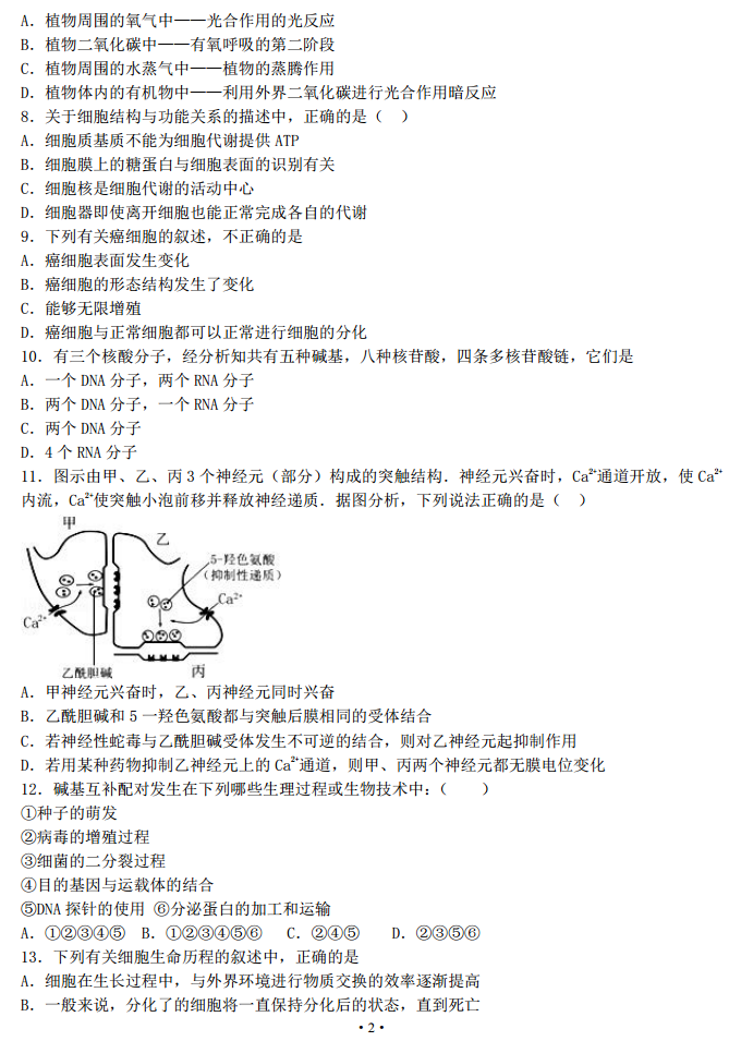 湖北枣阳鹿头中学2017届高三上学期9月月考生物试题答案(2)
