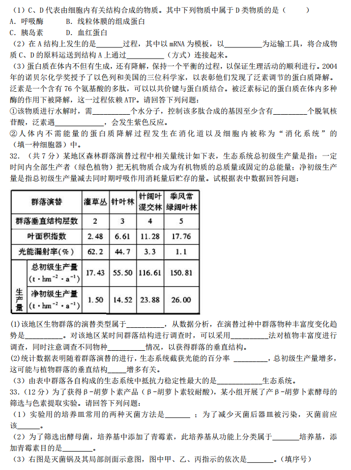 湖北枣阳鹿头中学2017届高三上学期9月月考生物试题答案(6)