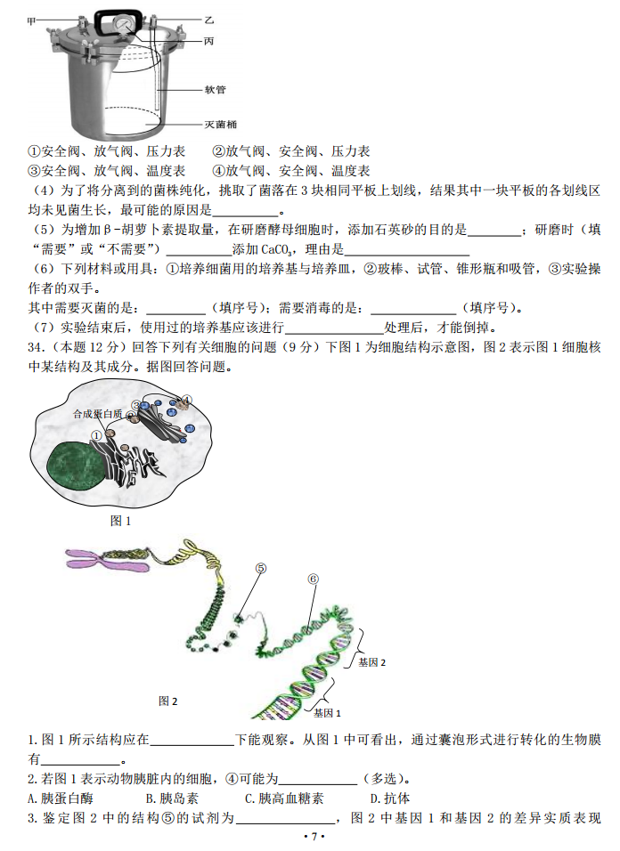 湖北枣阳鹿头中学2017届高三上学期9月月考生物试题答案(7)