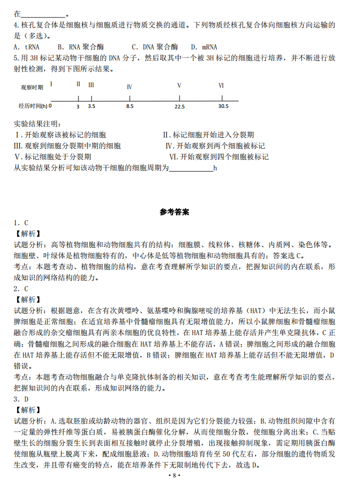 湖北枣阳鹿头中学2017届高三上学期9月月考生物试题答案(8)