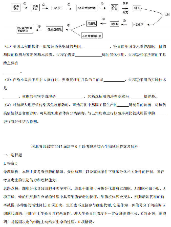 河北邯郸市2017届高三9月联考理科综合生物试题及答案(7)