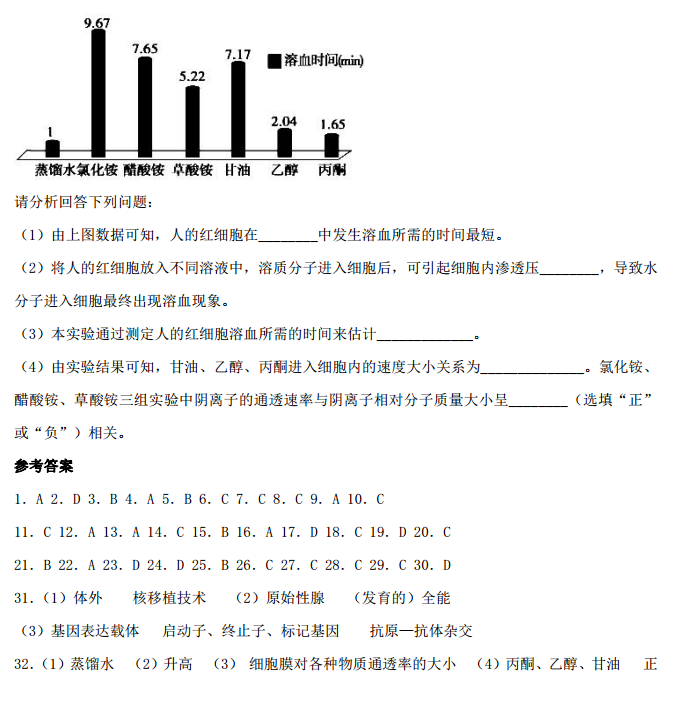 河北定州中学2016-2017学年高三上学期第二次月考生物试题及答案(10)