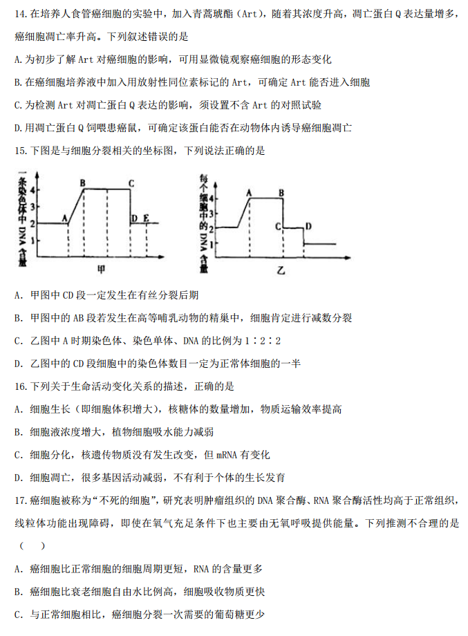 湖南衡阳八中2017届高三第三次月考生物试题及答案(6)