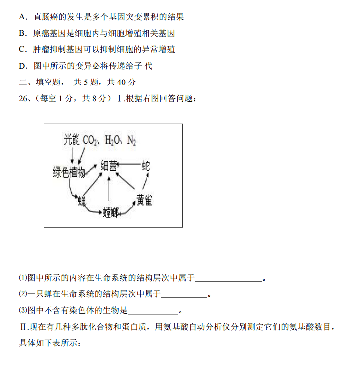河北承德市2017届高三上学期期中考试生物试题及答案(10)