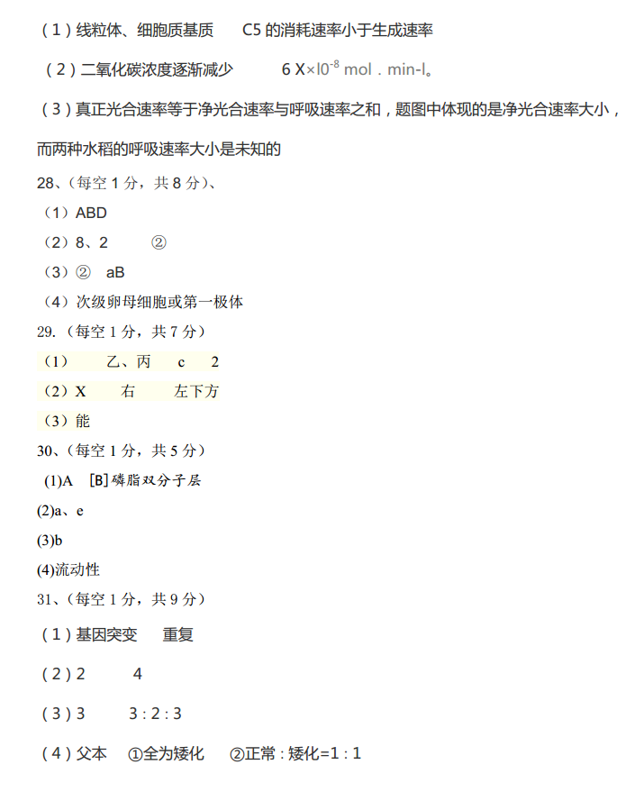 河北承德市2017届高三上学期期中考试生物试题及答案(15)