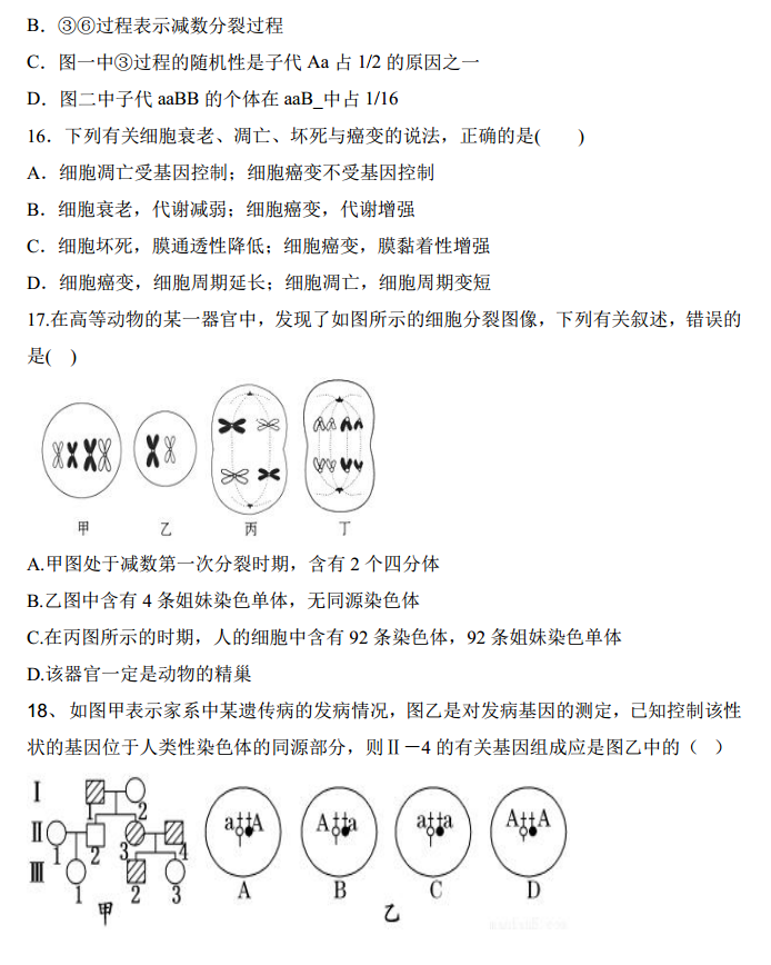 河北承德市2017届高三上学期期中考试生物试题及答案(7)