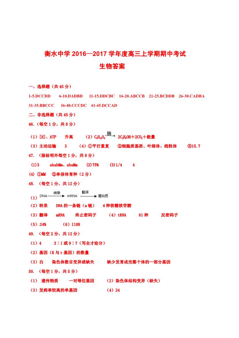 河北衡水中学2016-2017学年高三上学期期中考生物试题及答案(16)