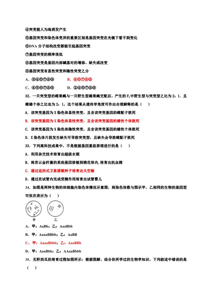 河北衡水中学2016-2017学年高三上学期期中考生物试题及答案(9)