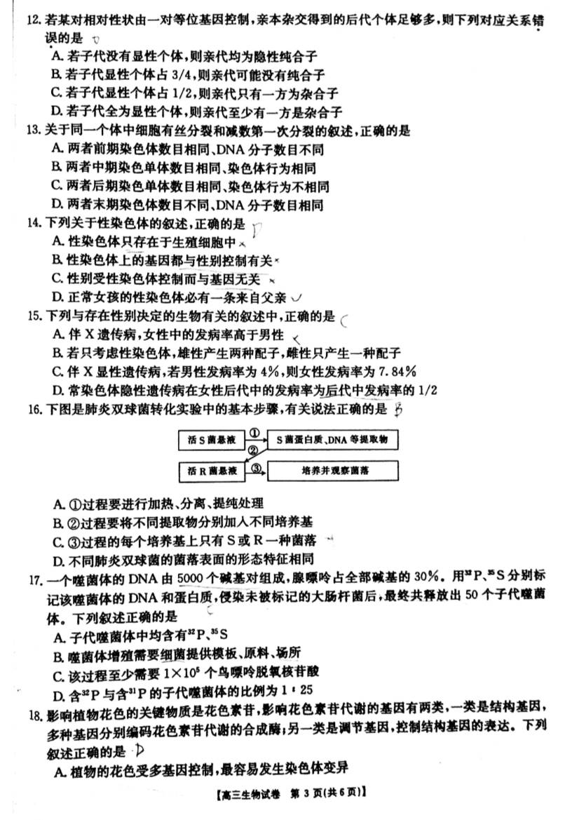 河南河北名校2017届高三第二次省际联考生物试题及答案(3)