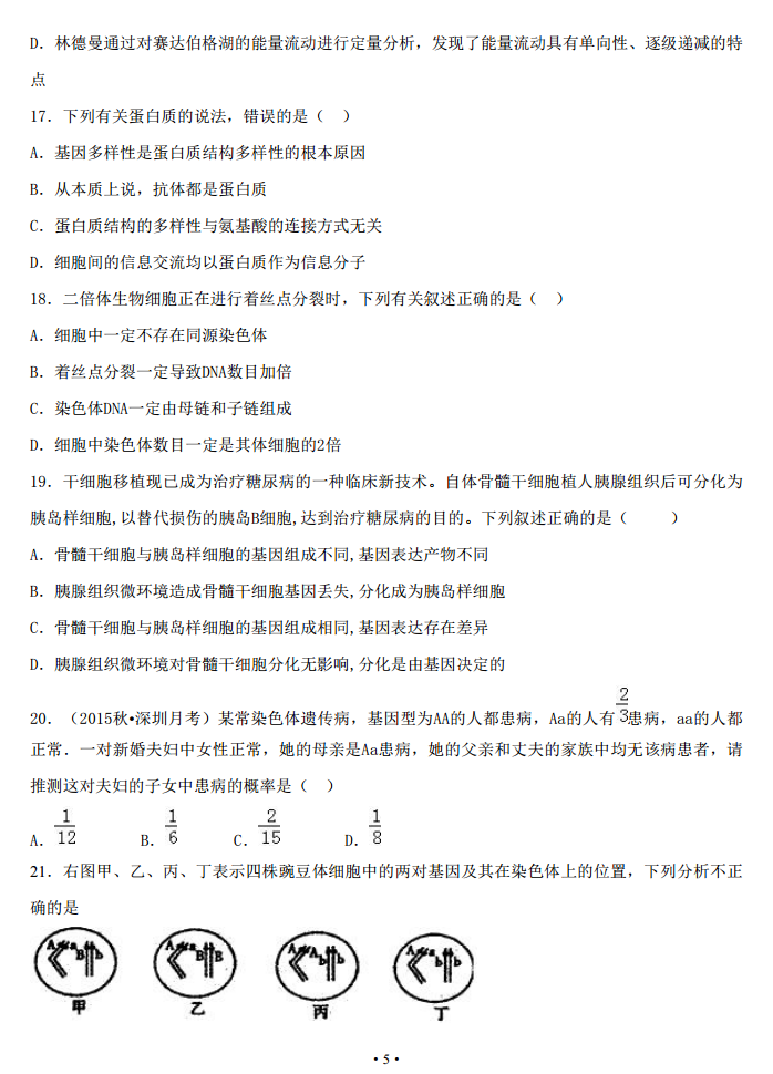 河北定州中学2017届高三上期期中考生物试题及答案(5)