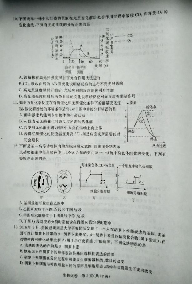 河北沧州2017届高三12月教学质量监测生物试题及答案(3)