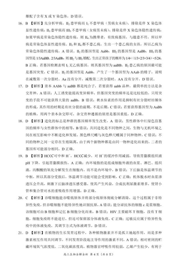 豫南九校2016-2017学年上期期末质量考评高三生物试题及答案(16)