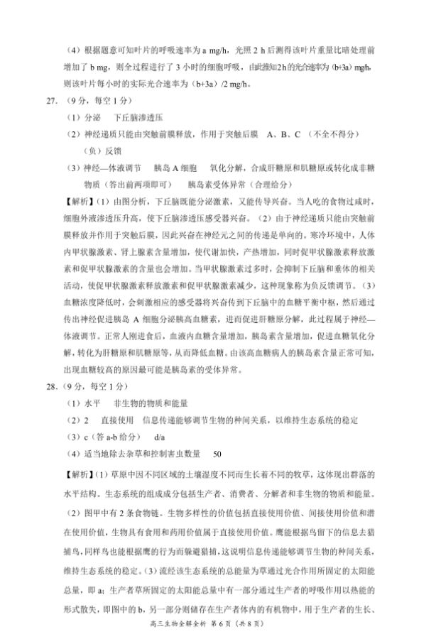 豫南九校2016-2017学年上期期末质量考评高三生物试题及答案(18)