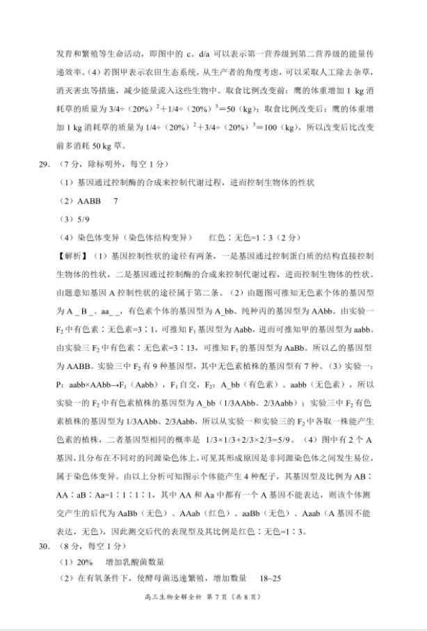 豫南九校2016-2017学年上期期末质量考评高三生物试题及答案(19)