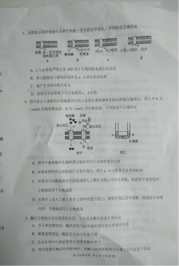 豫南九校2016-2017学年上期期末质量考评高三生物试题及答案(2)