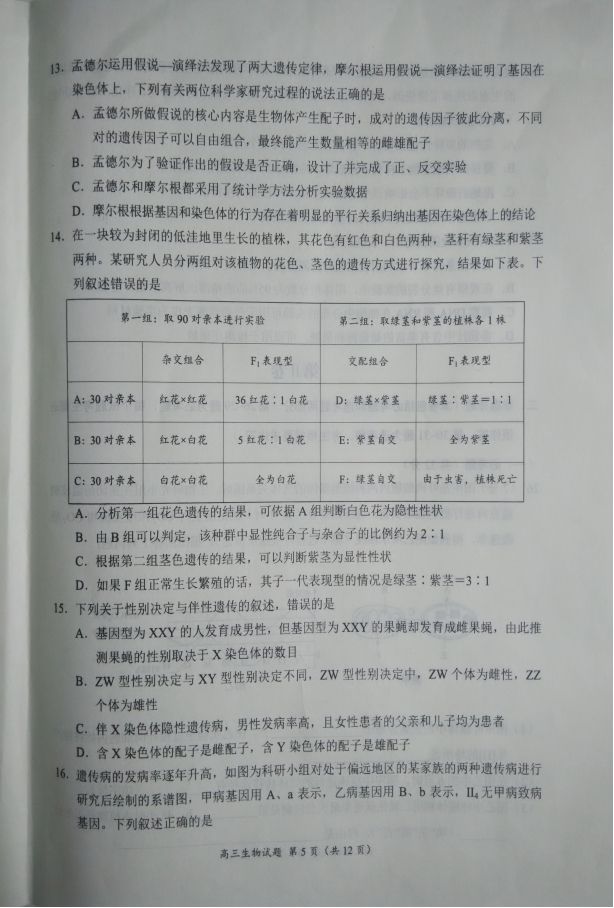 豫南九校2016-2017学年上期期末质量考评高三生物试题及答案(5)
