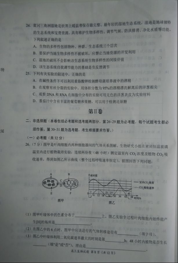 豫南九校2016-2017学年上期期末质量考评高三生物试题及答案(8)