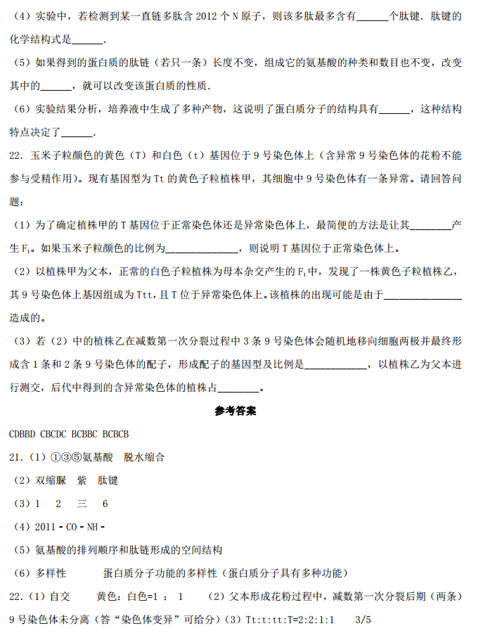 河北八所重点中学2017届高三第二学期第一次联考生物试题及答案(7)