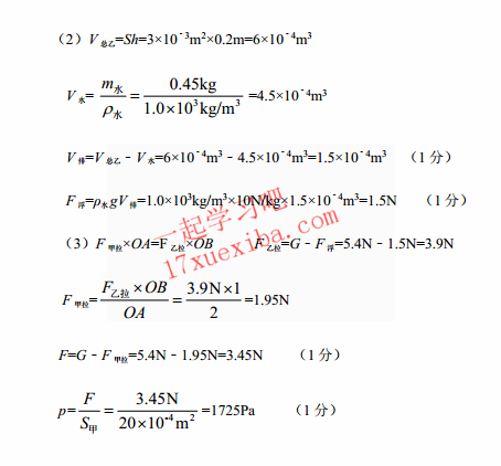 彭州市2017年初三诊断性考试物理试题答案(3)