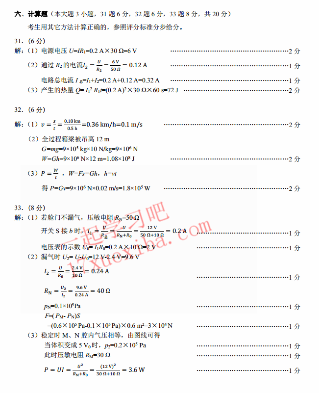 厦门市2017年中考教学质量检查物理试题及答案(2)