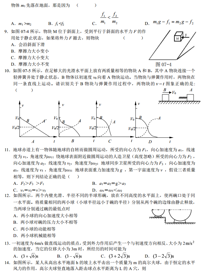 湖北沙市中学2017届高三上学期第三次考试物理试题答案(2)