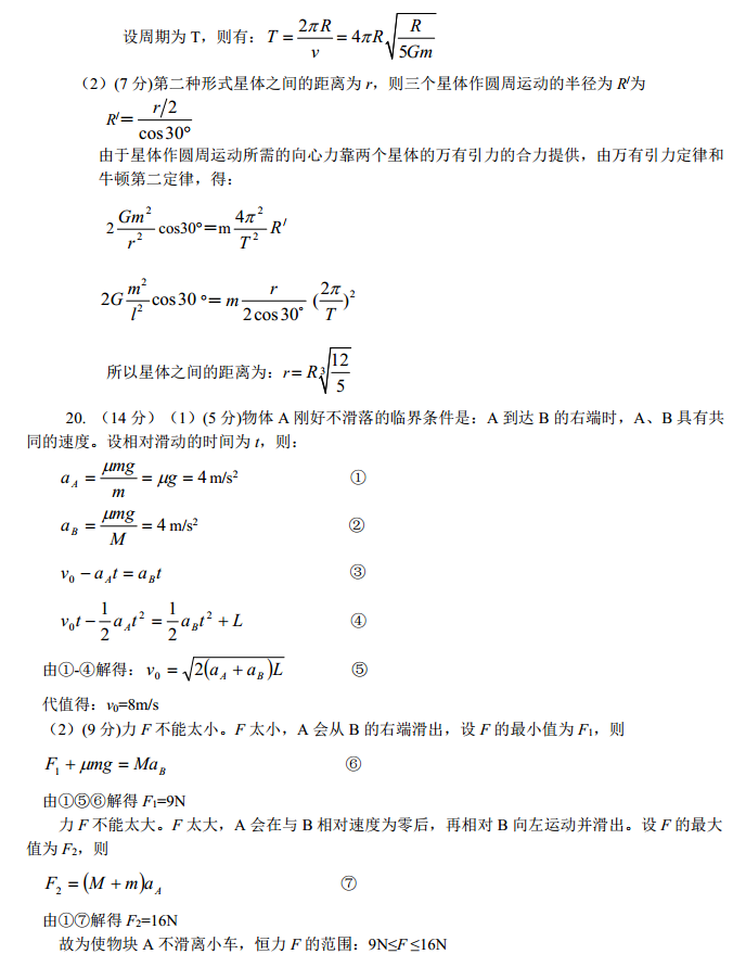 湖北沙市中学2017届高三上学期第三次考试物理试题答案(6)