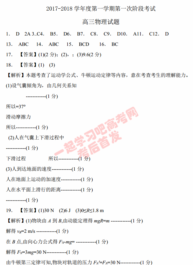 河北石家庄辛集中学2017届高三上第一次阶段考物理试题及答案(8)