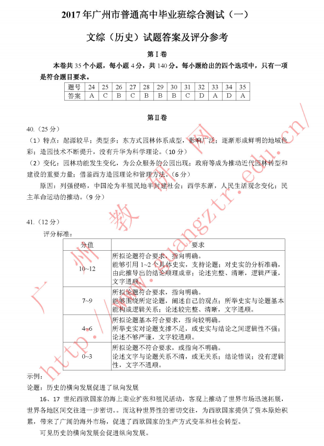 2017广州高中毕业班综合测试一文科综合试题及答案(20)
