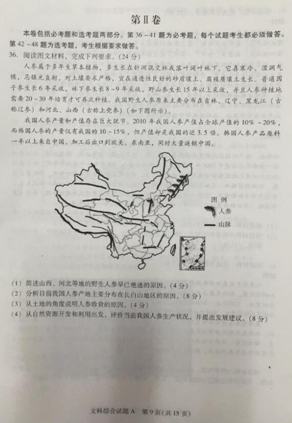 2017广州高中毕业班综合测试一文科综合试题及答案(9)