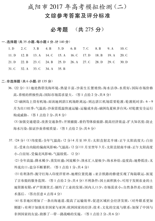 2017咸阳二模文综 咸阳高三模拟二文综试题及答案