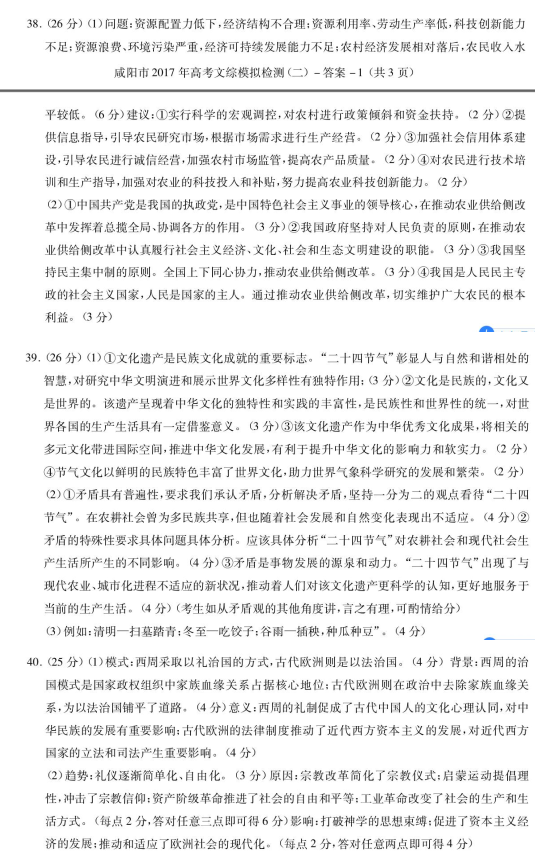 2017咸阳二模文综 咸阳高三模拟二文综试题及答案(2)
