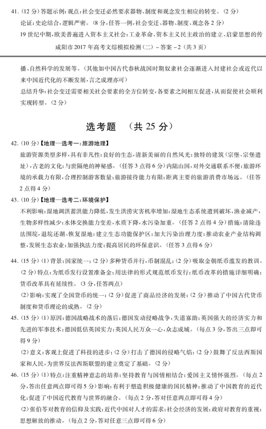 2017咸阳二模文综 咸阳高三模拟二文综试题及答案(3)