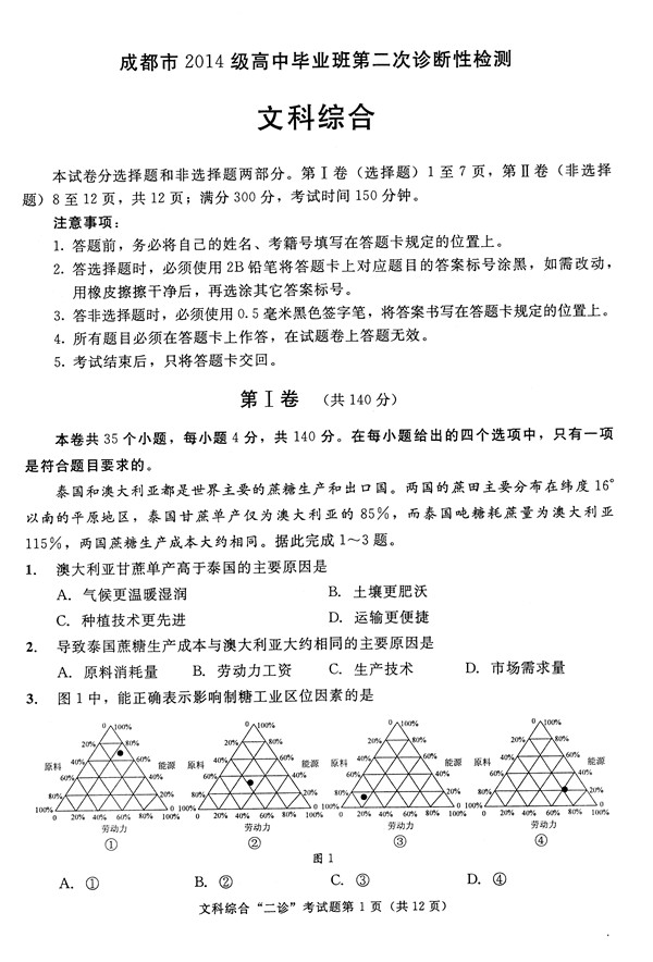 2017年成都二诊文综试题及答案