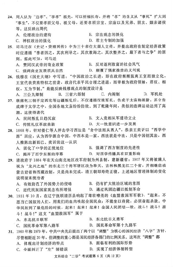 2017年成都二诊文综试题及答案(6)