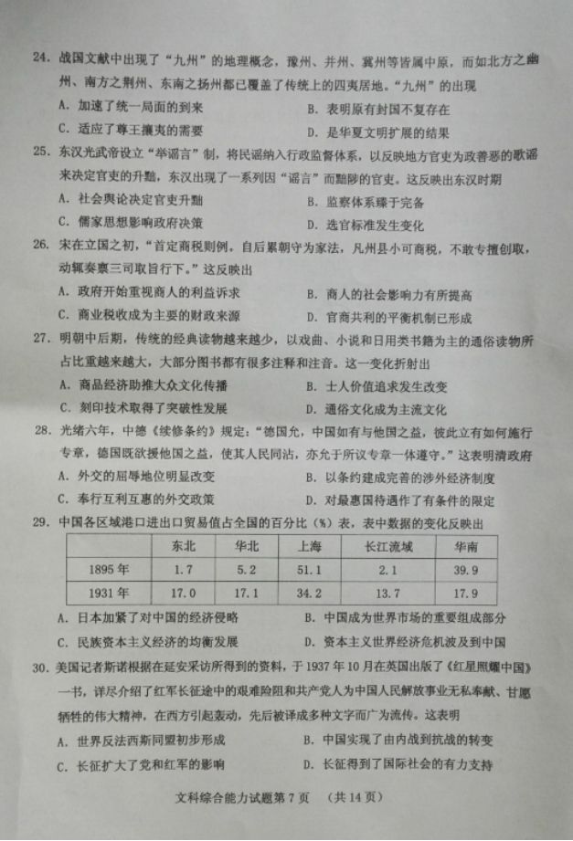邯郸2017届高三第一次模拟考文综试题及答案(7)