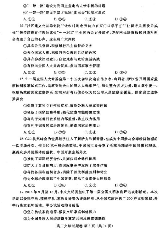 2017郑州二模文综试题及答案(4)