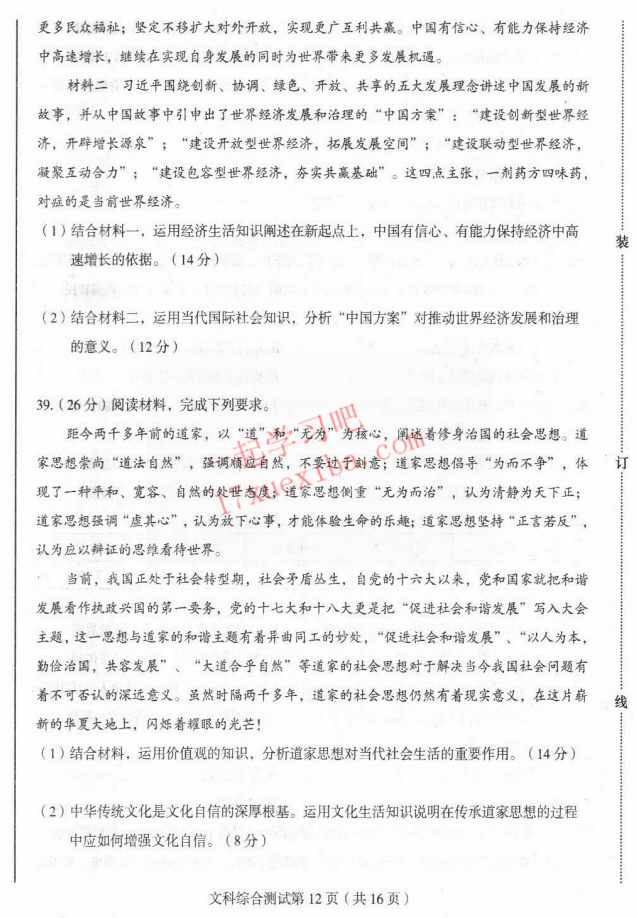 2017年东北三省四市高考第二次模拟考试文综试题及答案(12)