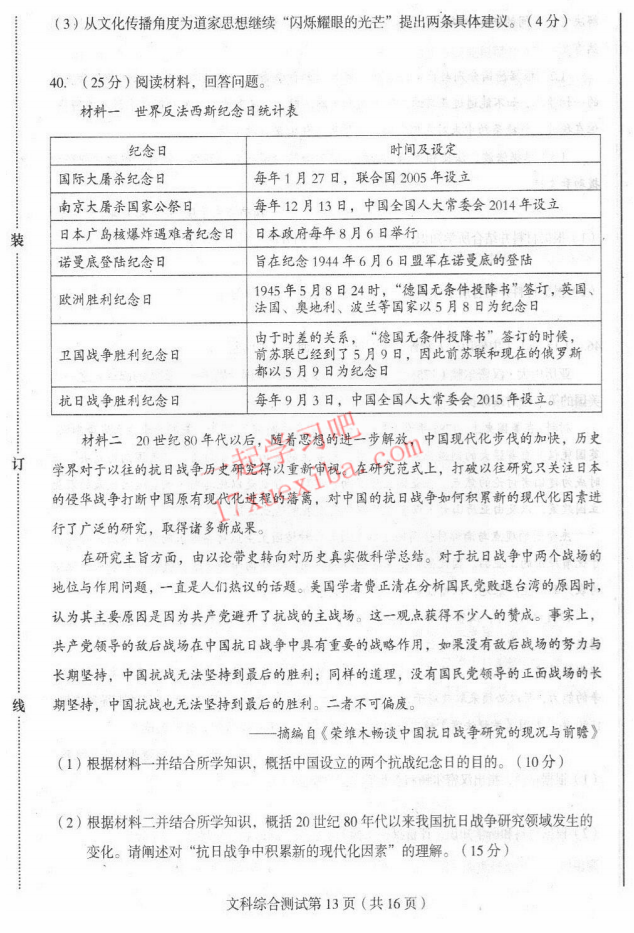2017年东北三省四市高考第二次模拟考试文综试题及答案(13)